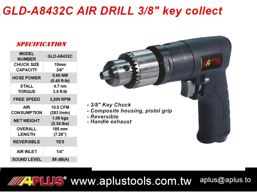 APLUS GLD-A8432, REVERSIBLE AIR DRILL, COMPOSITE HOUSING, GEAR TYPE