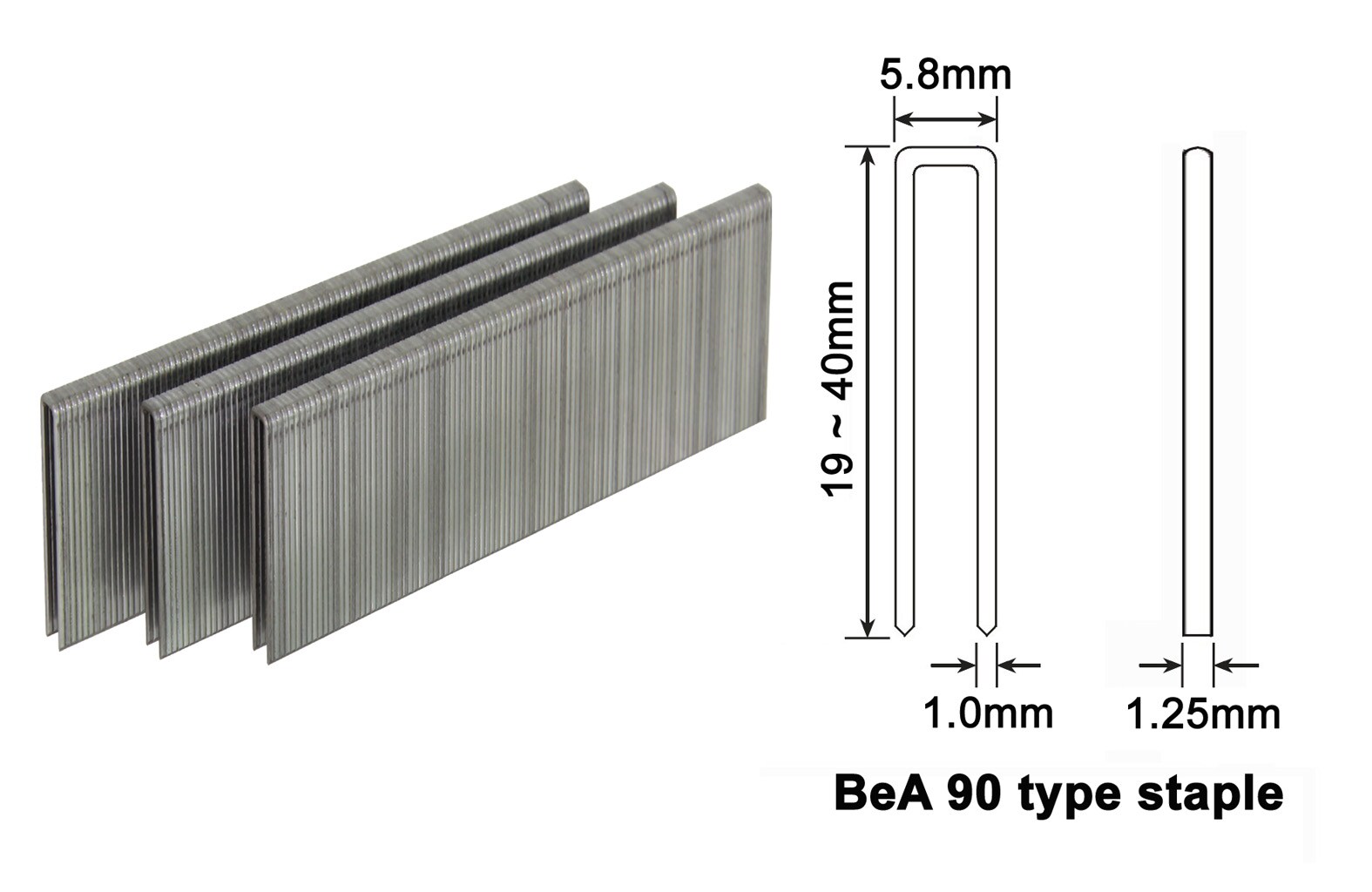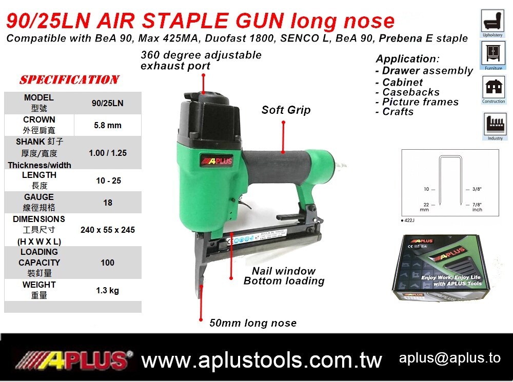 APLUS 90/25LN air staple gun, 18Ga. 10-25mm Long Nose air Stapler Crown:5.8mm, Shank:1.0x1.25mm Long nose Compatible with BeA 90, Max 425MA, Duofast 1800, SENCO L, BeA 90, Prebena E staple
