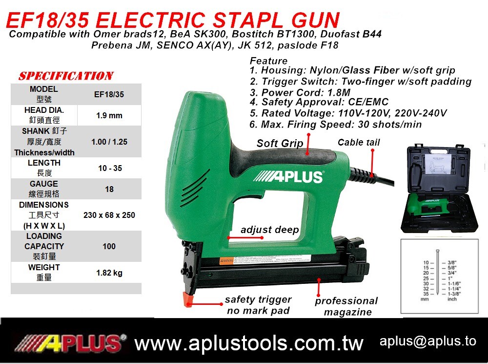 APLUS EF18/35、18Ga 35mm、F35 饰面角钉枪电动钉枪