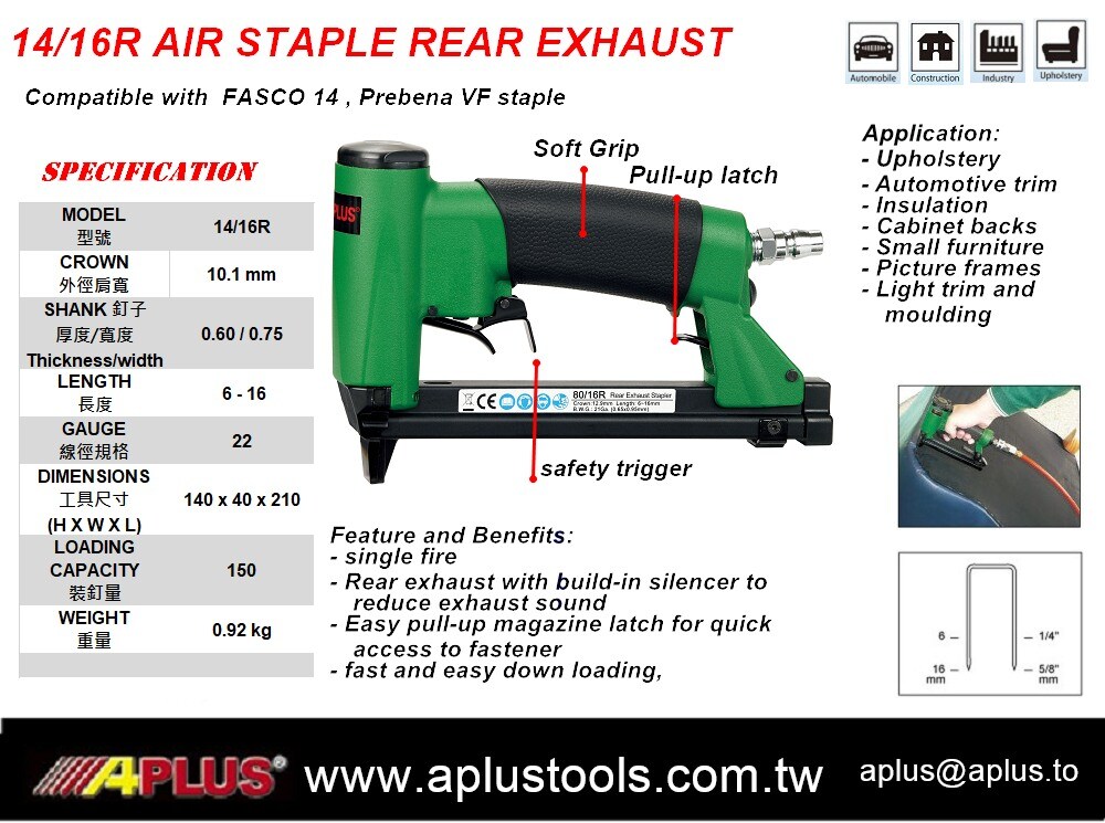APLUS 14/16R,16 毫米,10.1 毫米冠,14 型,软装气钉枪,双扳机