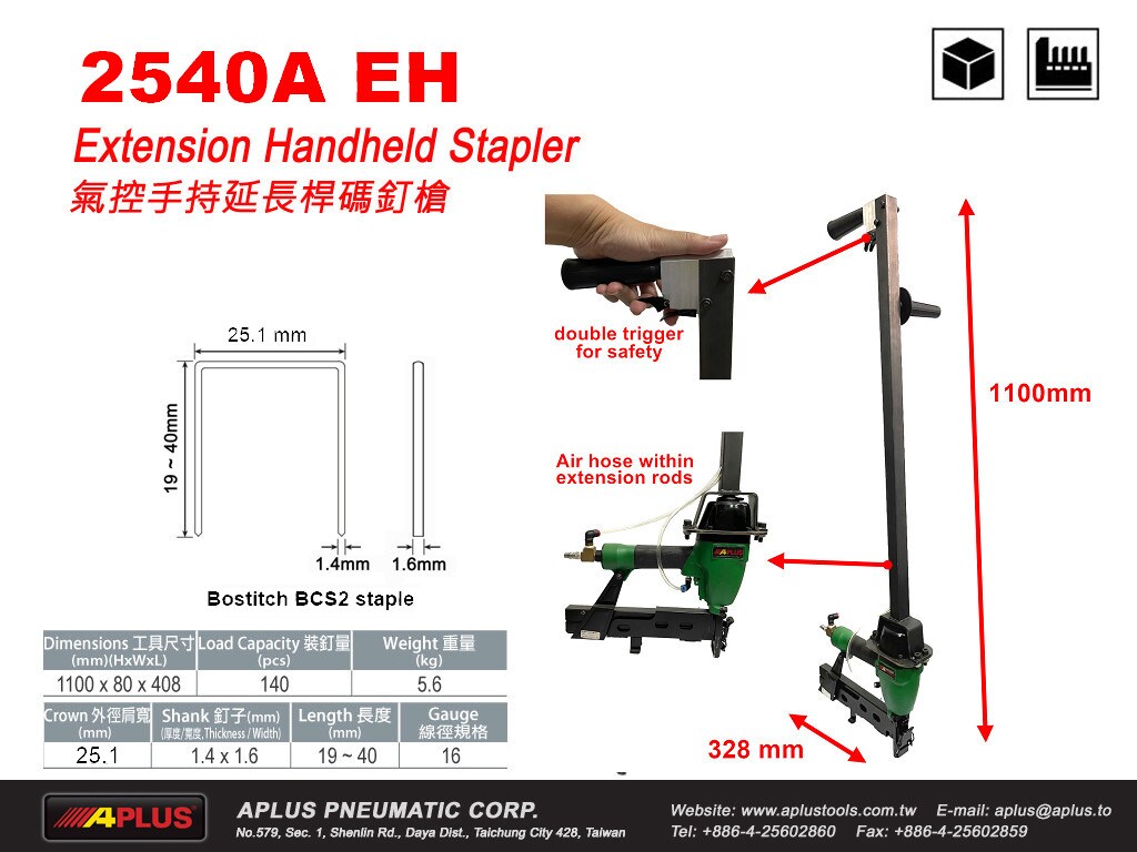 APLUS 2540AEH 2540 釘槍 加上 1100mm 工具 延伸桿 雙扳機 16GA 肩寬 25.1 mm ,線徑 1.4x1.6mm 氣動釘槍