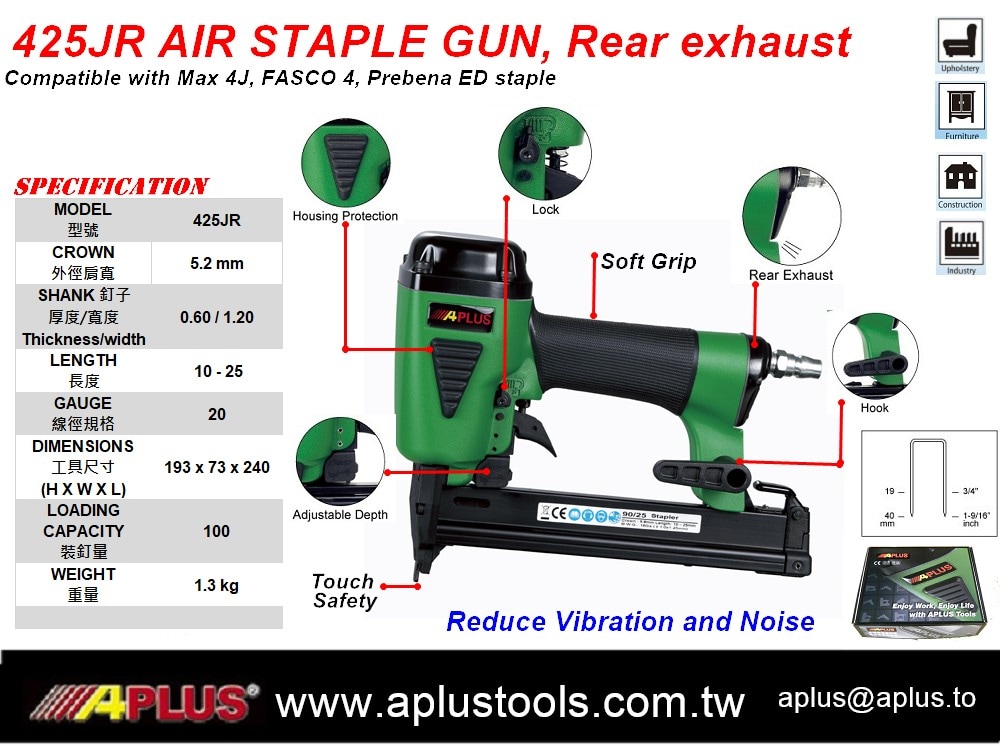 APLUS 425JR 18GA 12-25MM,5.2MM 皇冠 425JR 后排气订书机