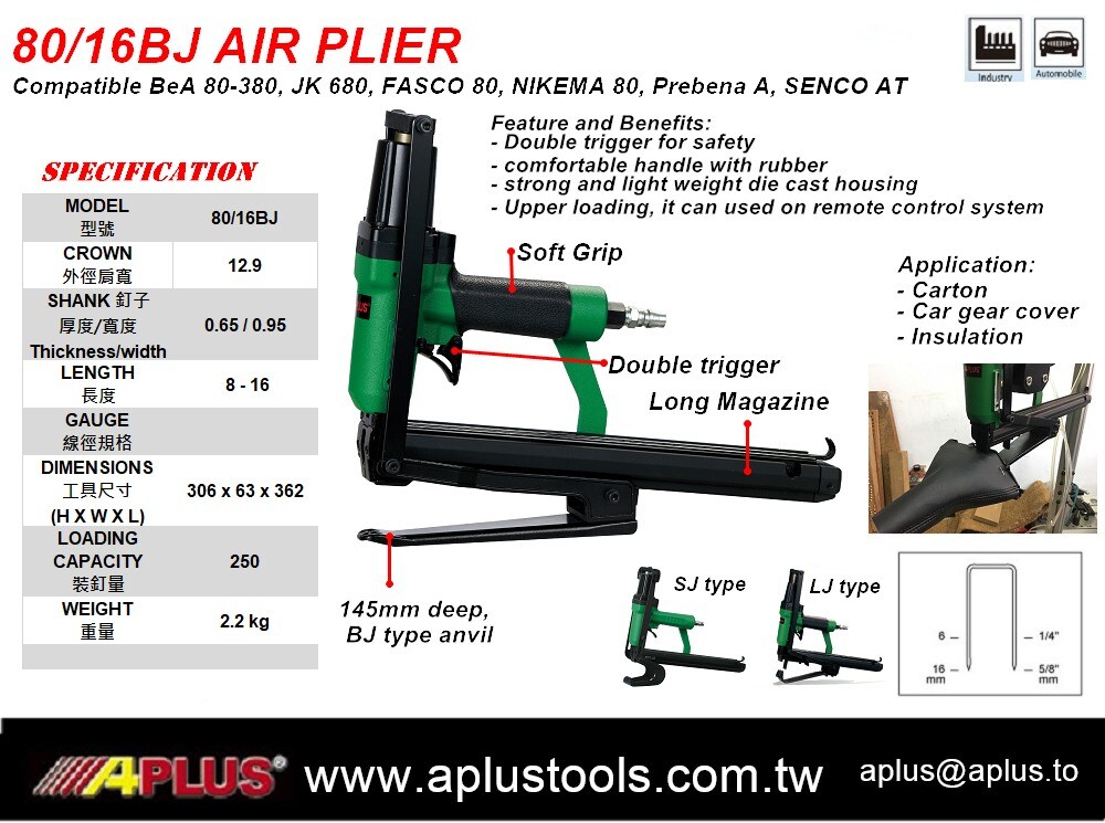 APLUS 80/16BJ 气钳枪纸盒闭合订书钉 12.9 毫米冠