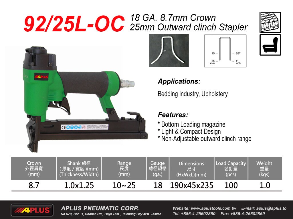 APLUS 92/25LOC,18GA 12-25MM,8.7MM 皇冠,92 钉轻型钉枪,织物成型订书机
