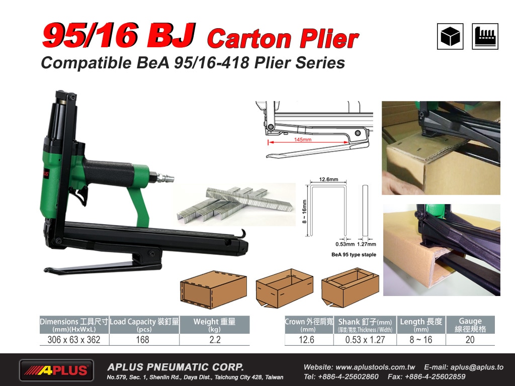 APLUS 95/16BJ 气钳枪纸箱闭合钉,皇冠 12.6 毫米 柄:0.53x1.27 毫米