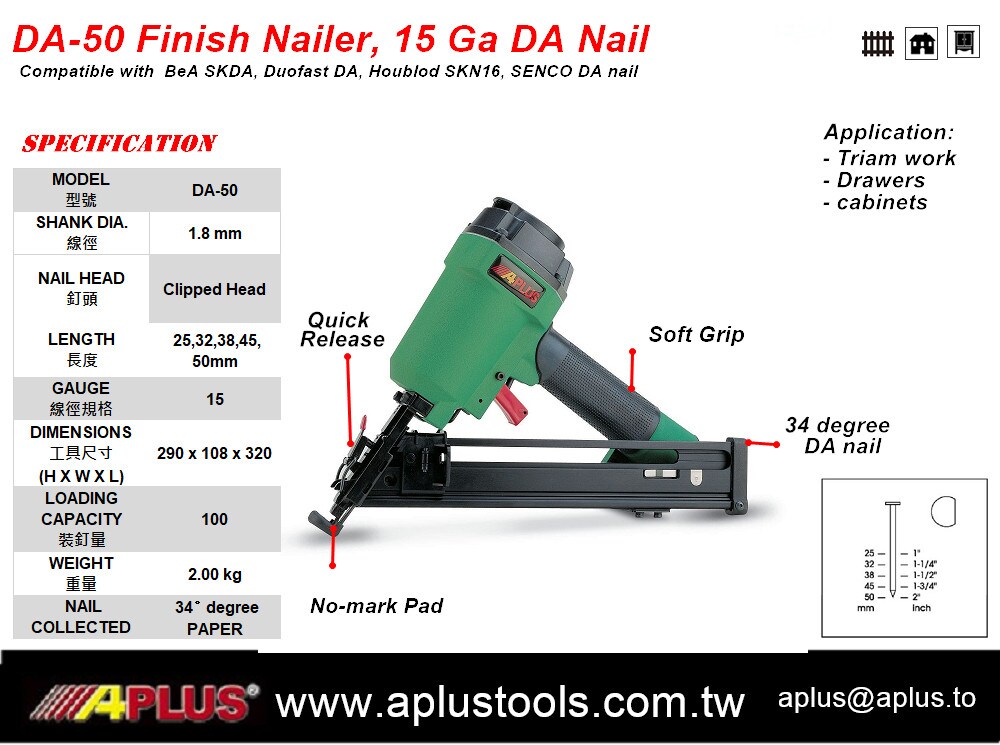 APLUS DA-50 射钉枪,夹头,纸收钉,柄径1.8mm,角钉器
