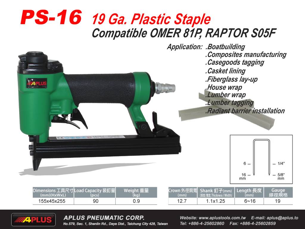 APLUS EPS-16, 16mm , 12.7mm crwon, 塑料钉枪, 兼容 OMER 81P, RAPTOR S05F, 家具电动钉枪