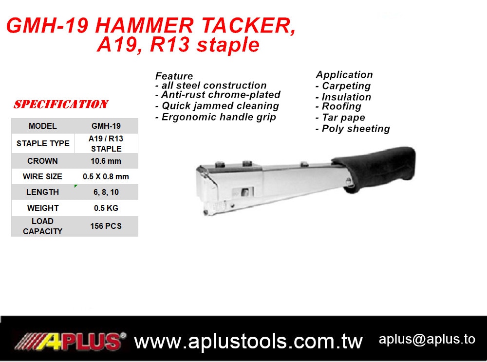 • APLUS GMH-G19轻型手锤敲钉器规格兼容A19、R13订书钉
