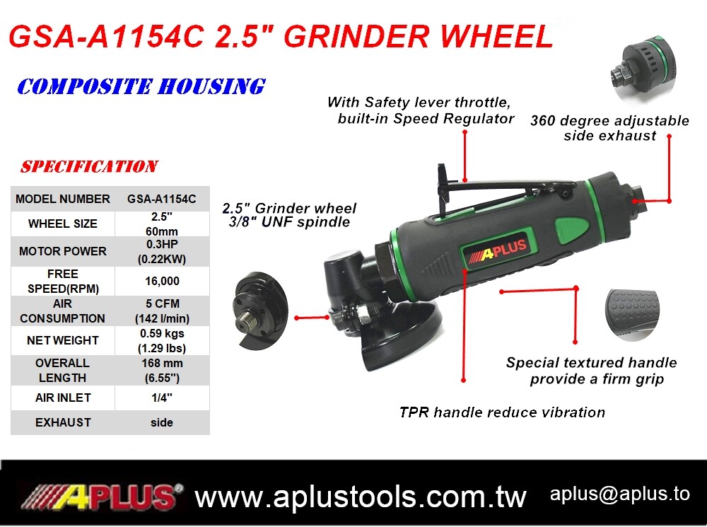 APLUS GSA-A1154C,复合材料外壳,0.3HP,2" 空气磨轮。旋转侧排气。