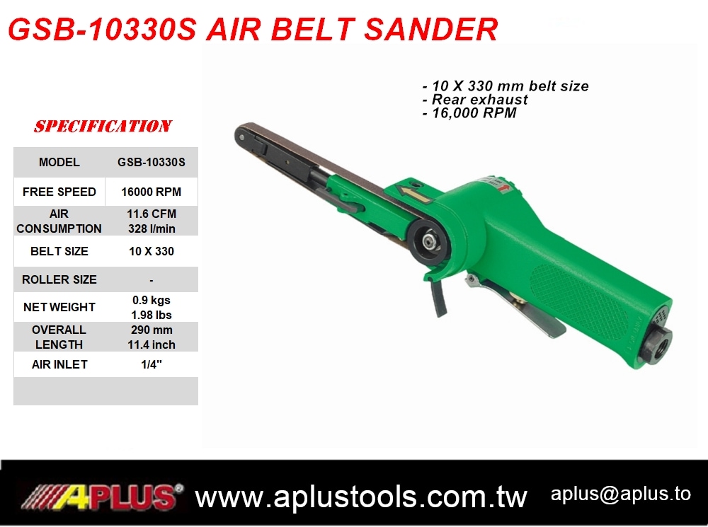 APLUS GSB-10330S 空气砂带磨光机 10x330mm 砂带尺寸,16,000 rpm,后排气