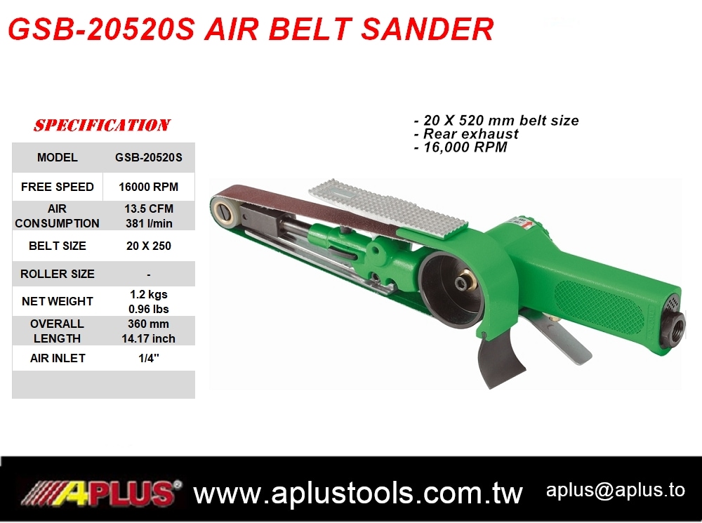 APLUS GSB-20520S 空气砂带磨光机 20x520mm 砂带尺寸,16,000 rpm,后排气