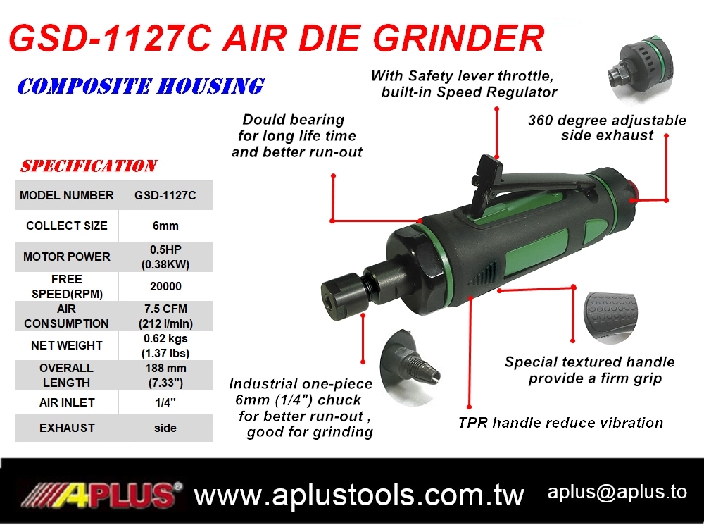 APLUS GSD-1127C,1/4" 或 6MM 直风模磨机 0.5HP 复合外壳