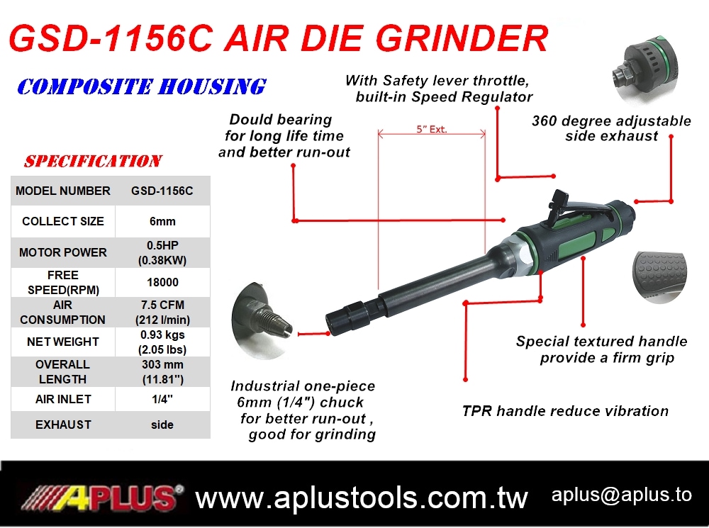 APLUS GSD-1156C,1/4" 或 6MM 直风模磨机 0.5HP 18,000 rpm 复合外壳