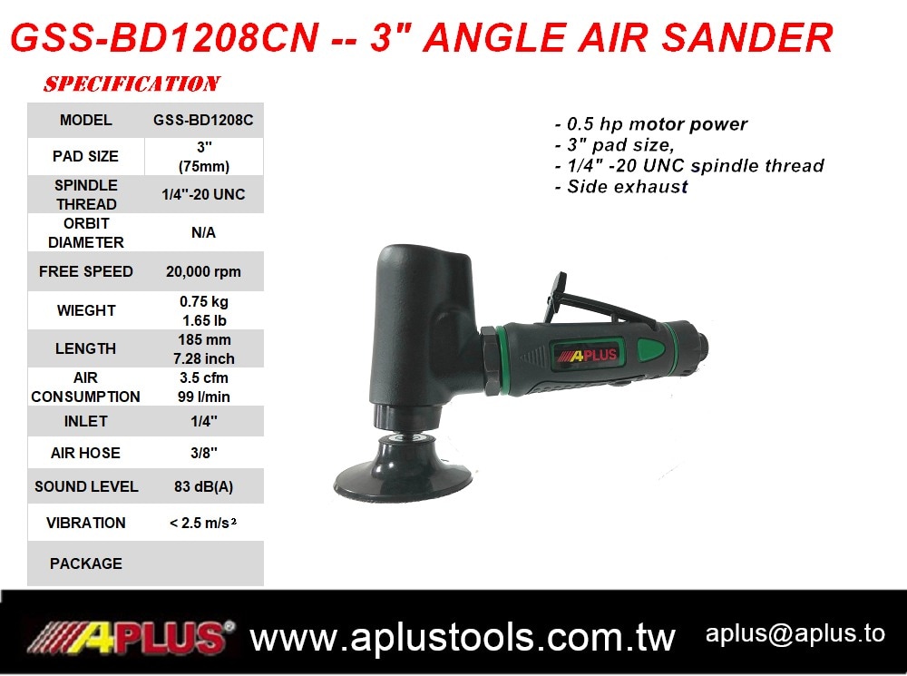 APLUS GSS-BD1208CN,3" 角度空气打磨机,复合材料外壳,0.5HP,3" 垫尺寸,侧面排气