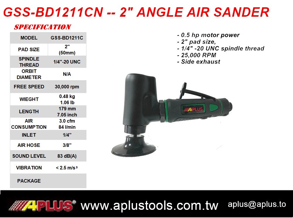 APLUS GSS-BD1211CN 角向空气打磨机,复合外壳,0.5HP 动力电机,25,000RPM,无齿轮侧排气