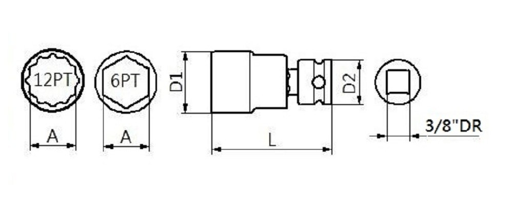 APLUS GTS-5155111 3/8 英寸 Dr. 旋转冲击套筒