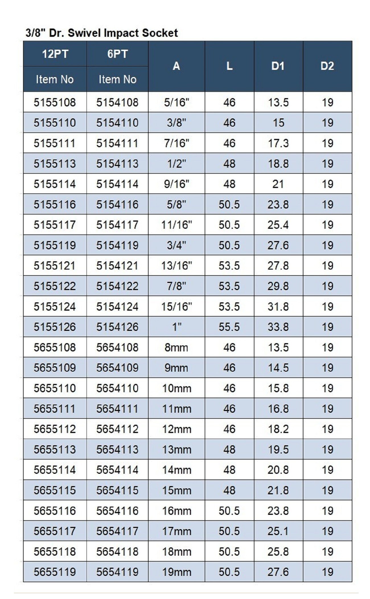 APLUS GTS-5155119 3/8 英寸 Dr. 旋转冲击套筒