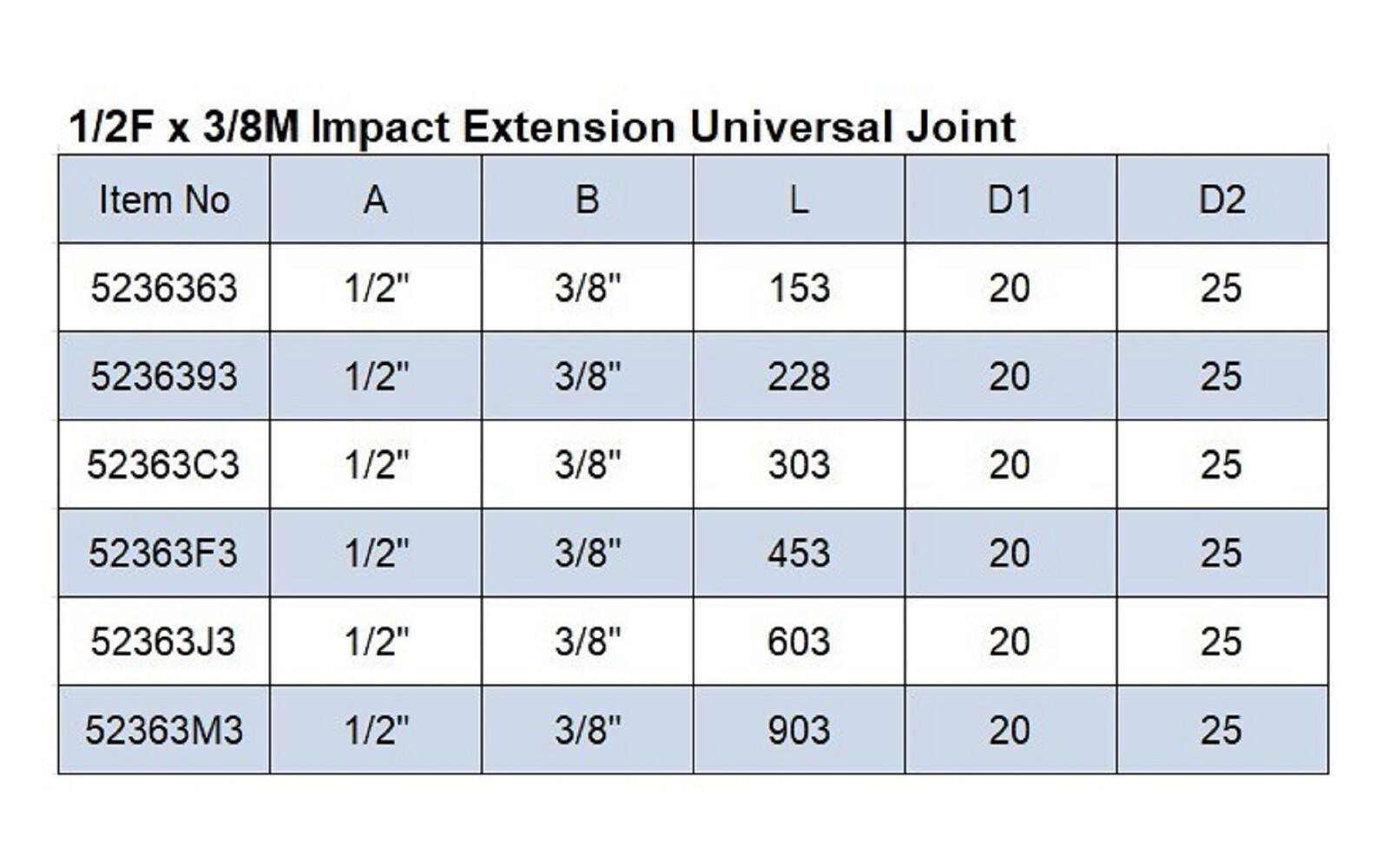 APLUS GTS-52363C3 1/2"F x 3/8"M 冲击延长万向节