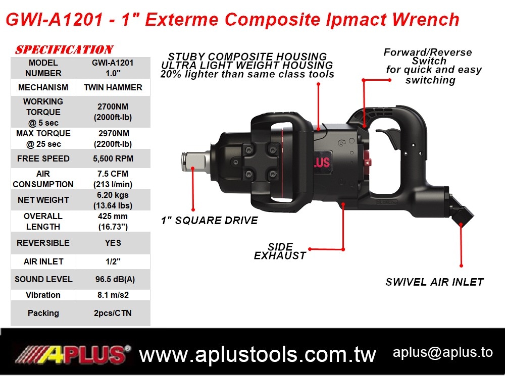 APLUS GWI-A1201,1" 英寸复合外壳气动扳手 重量轻 功能更强大
