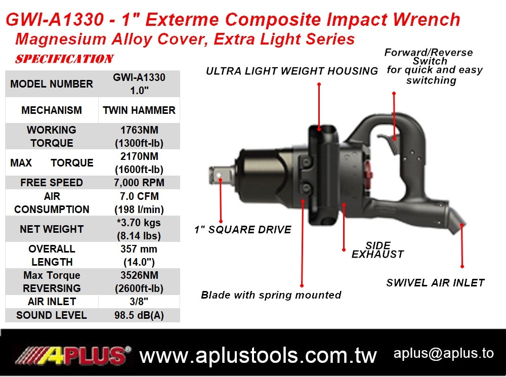 • APLUS GWI-A1330,1" 英寸复合外壳气动扳手 重量轻 功能更强大