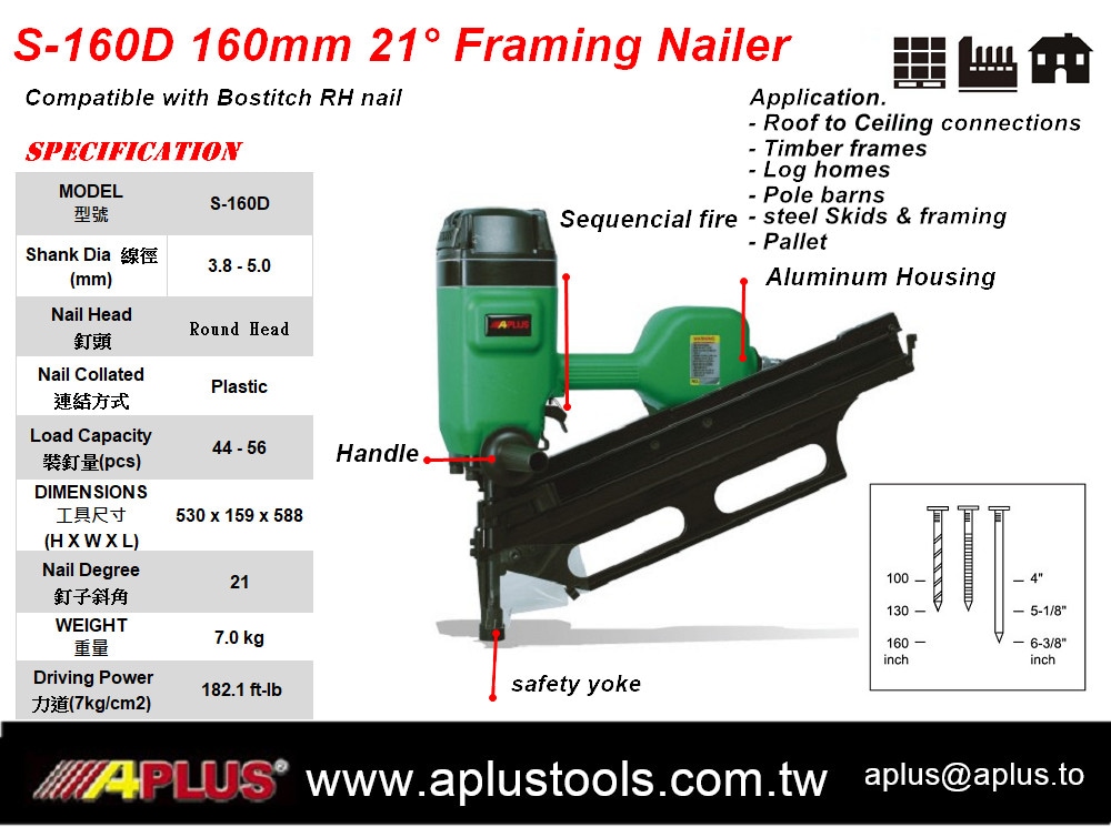 APLUS S-160D,全头,21 度,塑料排列和驱动器 4"~6-1/4" (100~160mm),驱动功率为 182.1 ft-lb,重量 7 kg