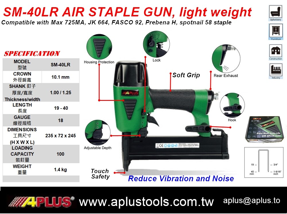APLUS SM-40LR 18GA ,19-40MM 钉式后排气气钉枪