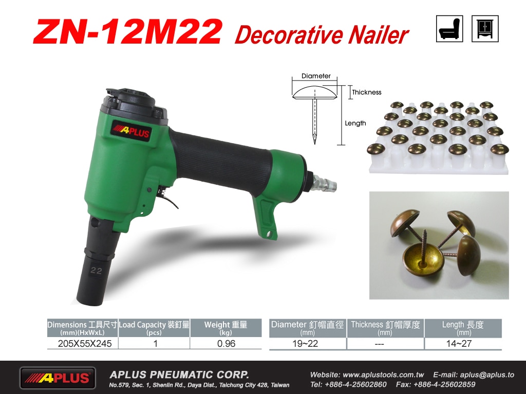 APLUS ZN-12M22 单发装饰钉枪,直径 22 毫米 沙发制作工具